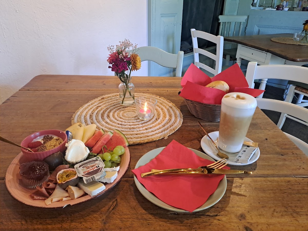 As you step inside, you are greeted by an atmosphere that beautifully blends warmth and rustic charm—each corner adorned with delightful décor that gives it an inviting landhaus vibe. The staff, always with a friendly smile, makes you feel right at home, welcoming your order directly at your table before you settle into the plush ambiance.